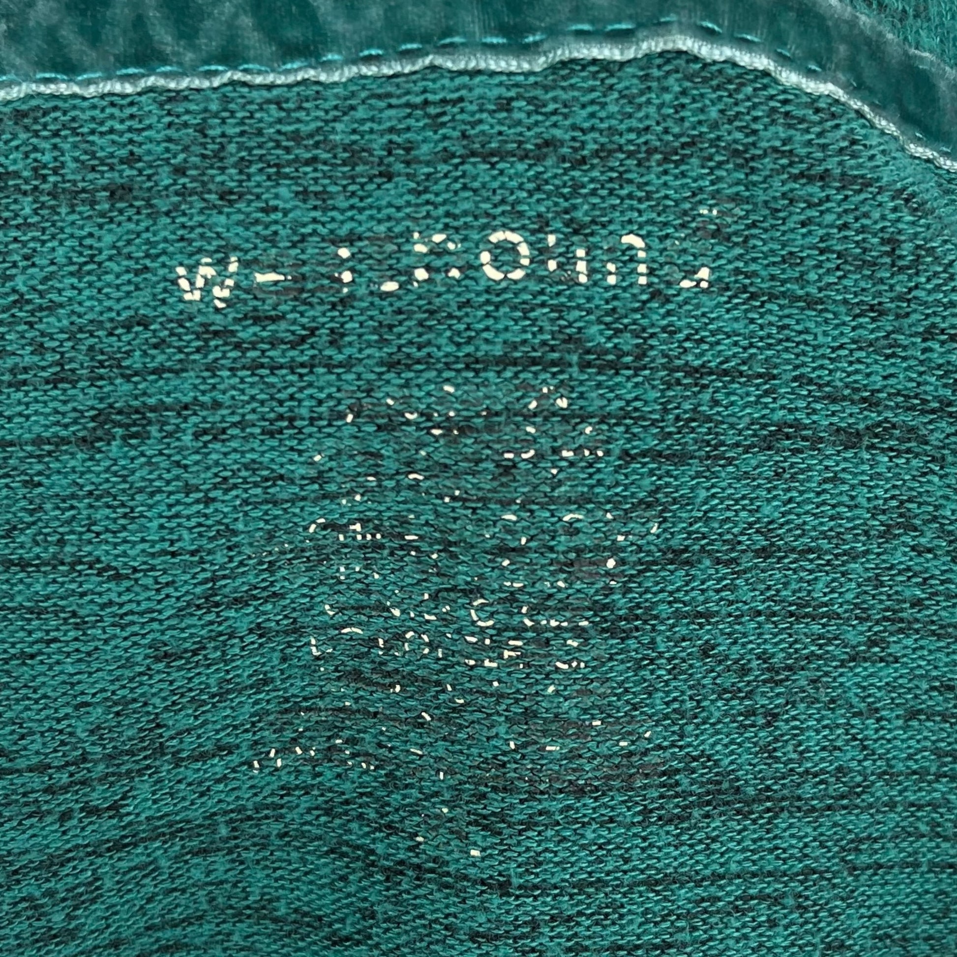 Cozy teal cowl neck pullover top in a soft heathered knit with a relaxed, loose fit. Features two front patch pockets and long sleeves. No size tag but measures like a women’s 2X