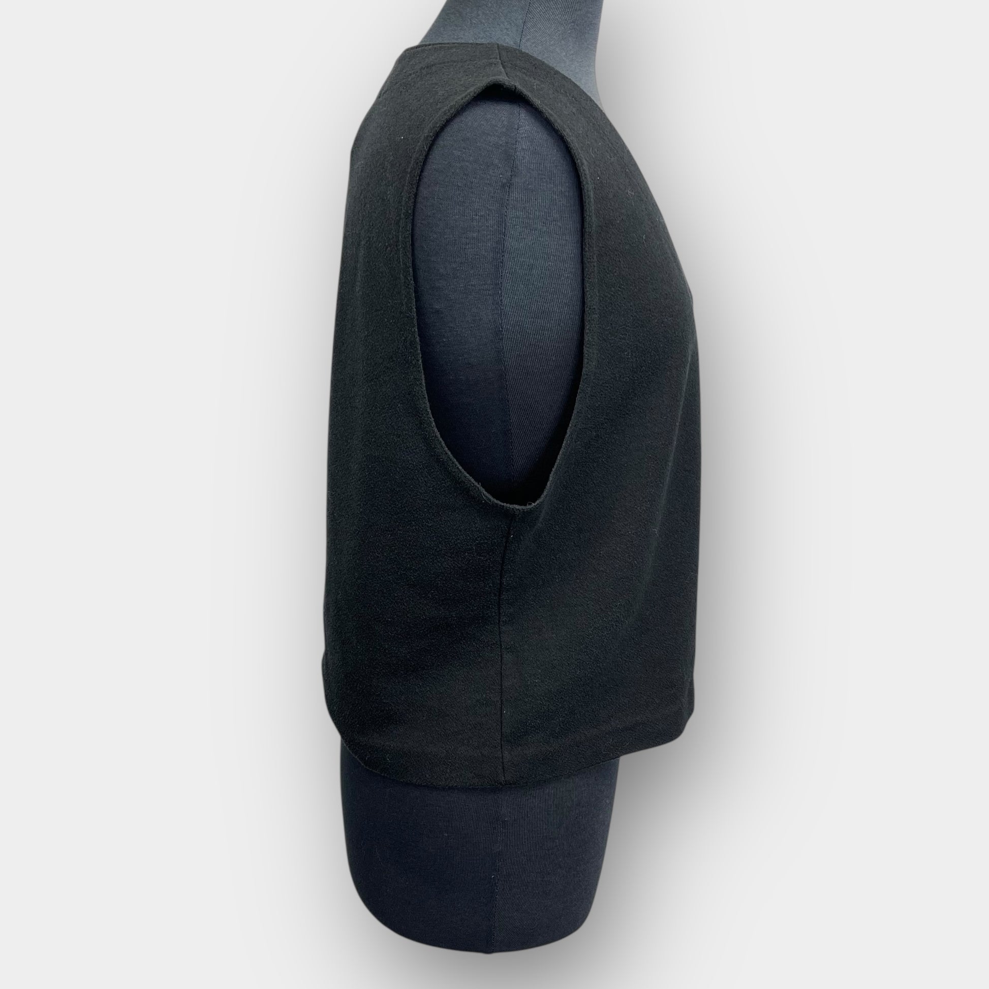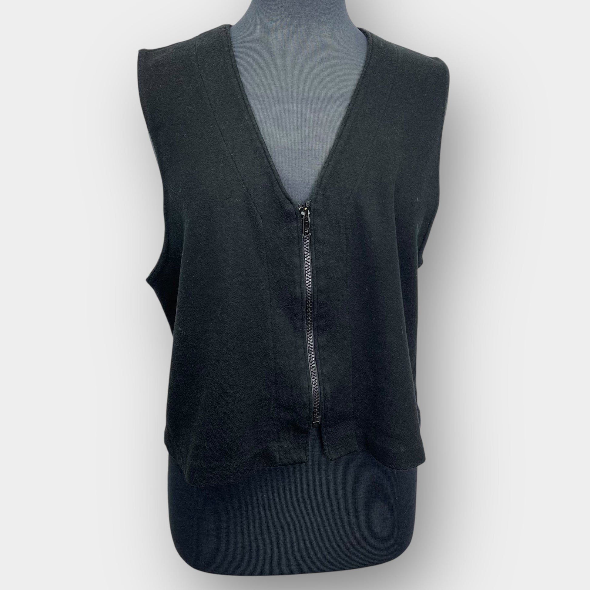 Soft midweight fabric with a full front zipper, deep V neckline, and no pockets