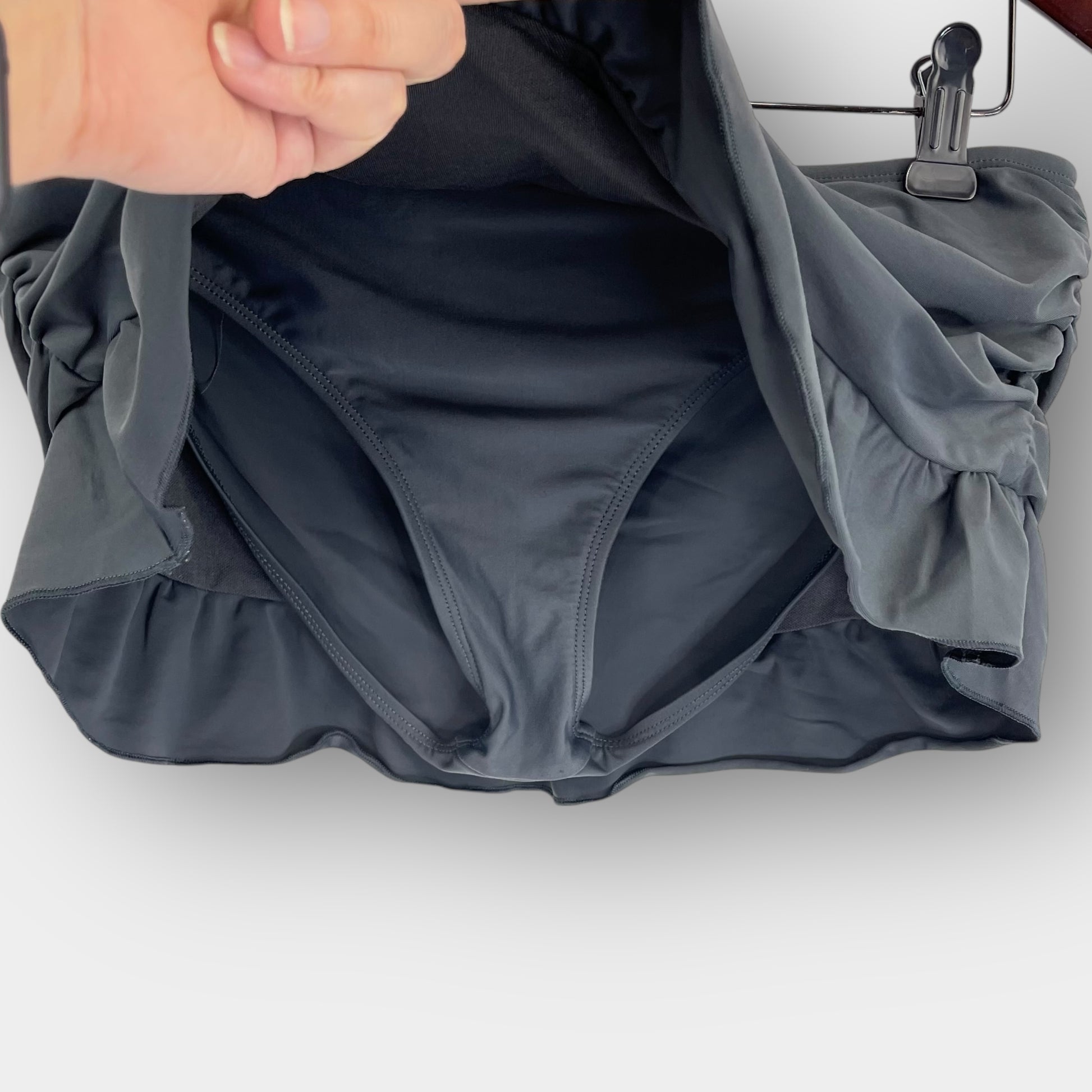 Skye ruffle swim skirt crafted in a flattering fold-over design, it offers comfortable coverage and feminine flair with its playful, double-layered ruffle hem. The streamlined silhouette conceals a built-in brief for full support, while the high stretch nylon/spandex blend ensures a snug, move with you fit