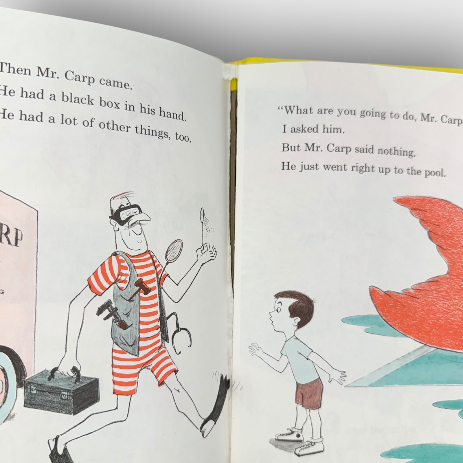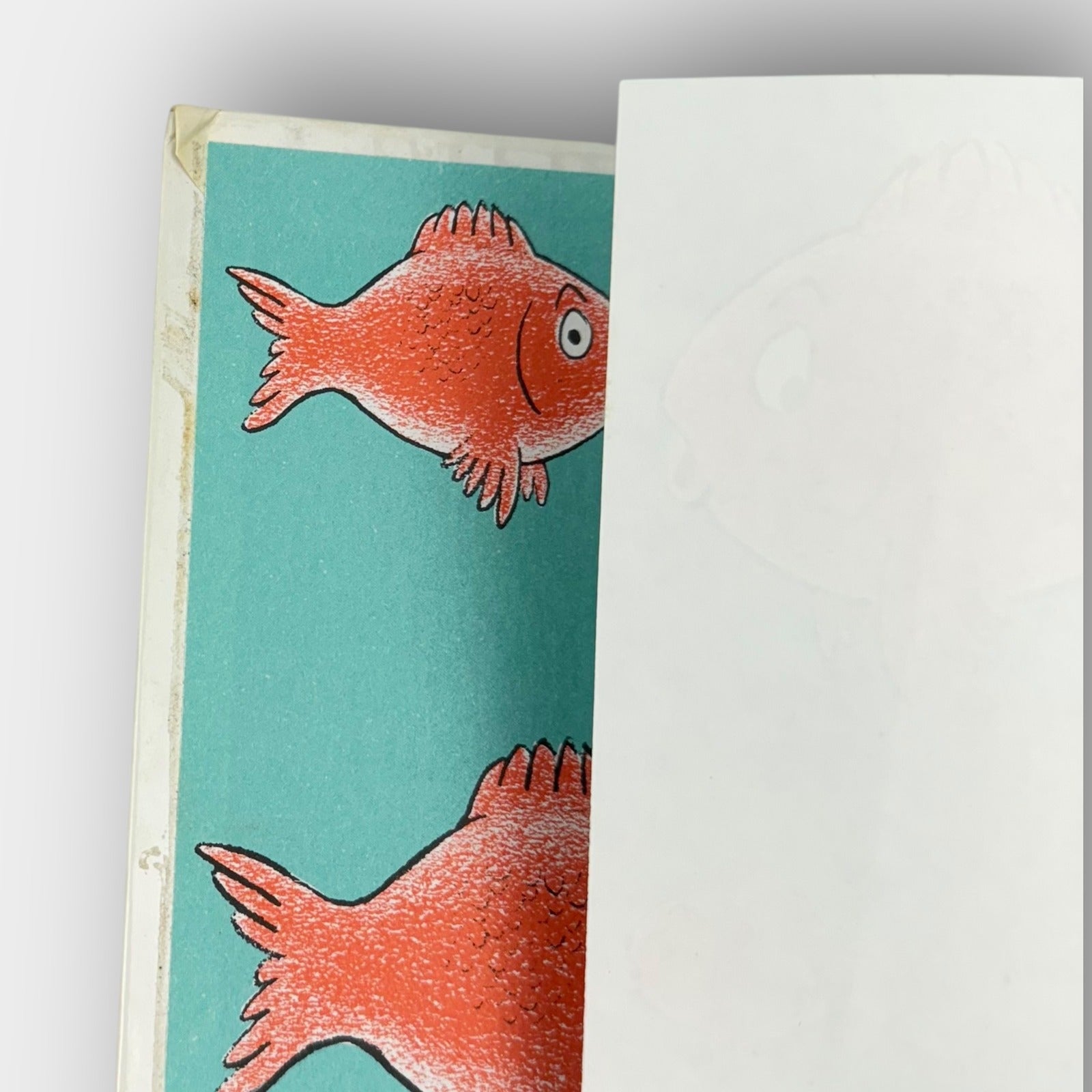 Vintage 1961 hardcover A Fish Out of Water by Helen Palmer, illustrated by P.D. Eastman, part of the Beginner Books series; binding remains intact though some pages are detaching at the spine (see photos), with a few interior page marks visible; cover shows light surface wear