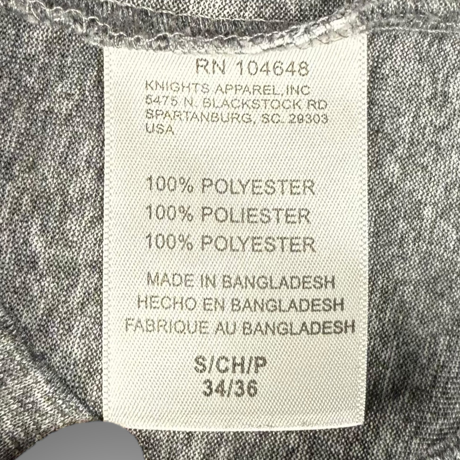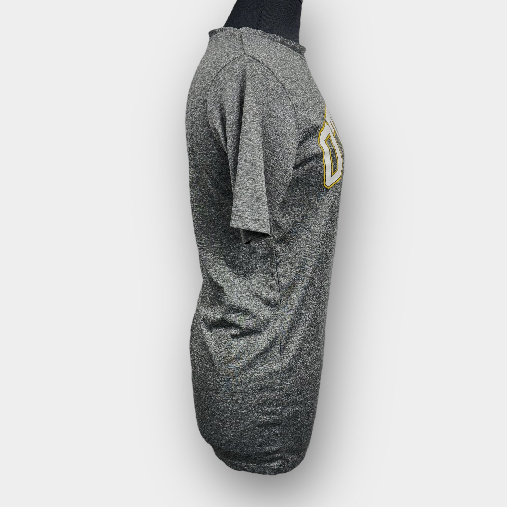 Grey short sleeve t-shirt with bold Ottawa Senators team logo and lettering across the chest. Features a classic crew neckline and straight hem