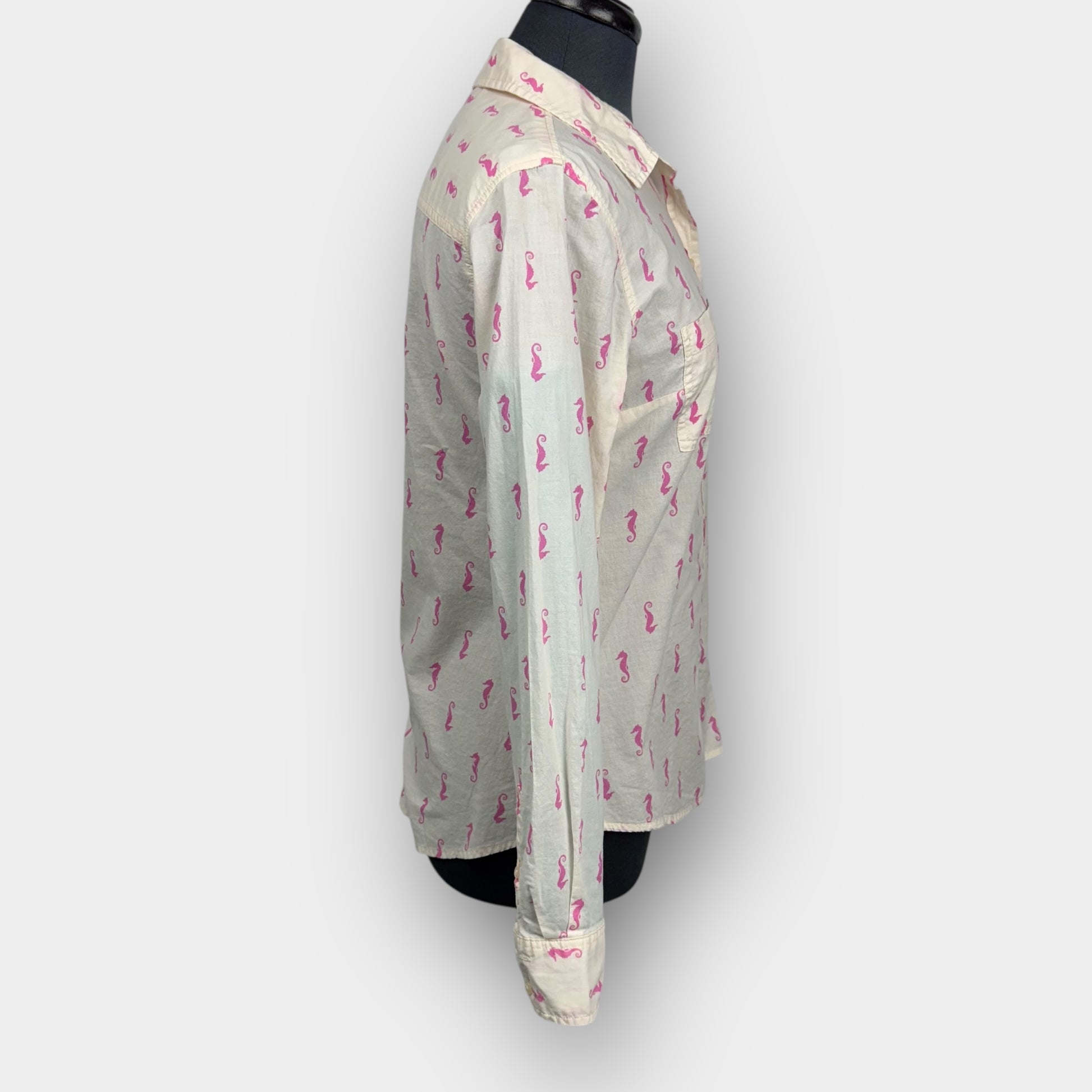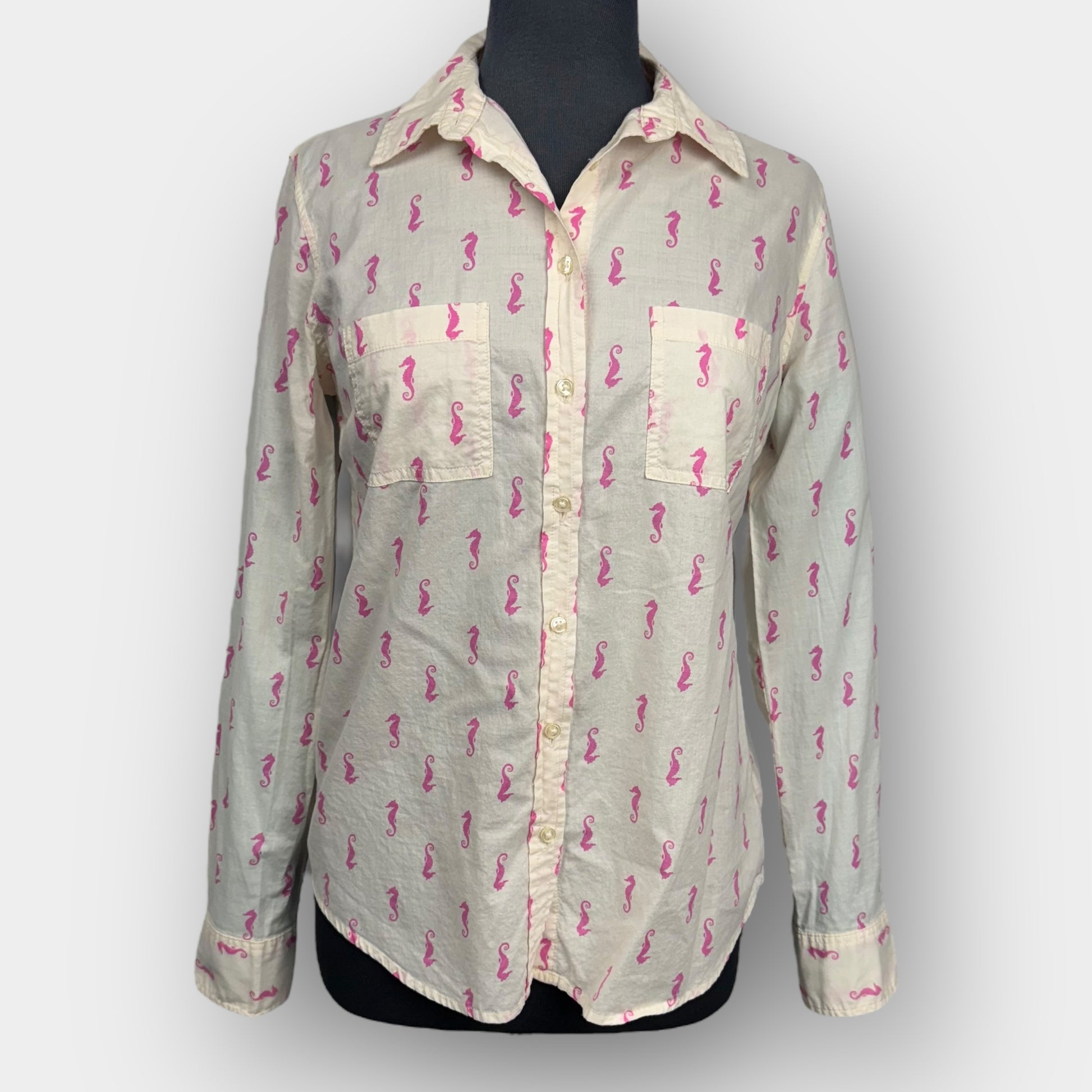 Merona button-up blouse in lightweight sheer fabric with long sleeves and a classic collar. Very light material makes it semi-see-through, as shown against the mannequin