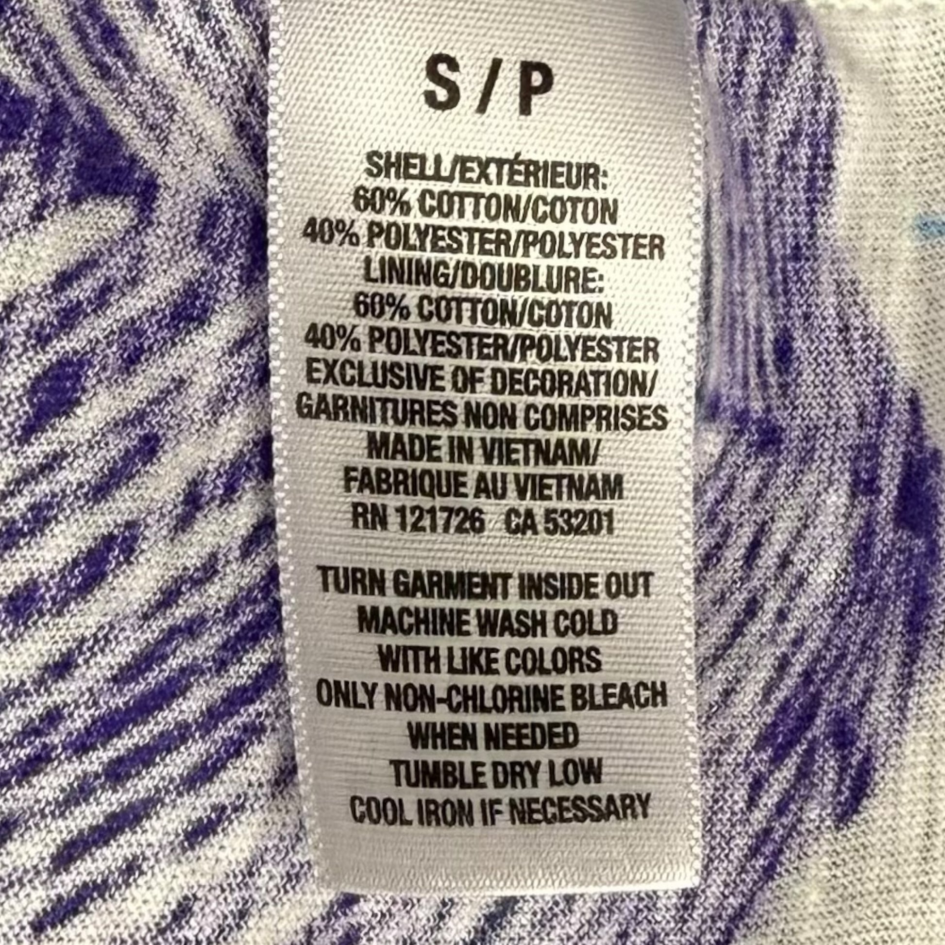 Aeropostale layered cami with thin spaghetti straps and a double ruffle front, finished in a bold blue and purple floral print against white. The top has a casual fit with a slightly flared hem and remains in good condition with no major flaws noted