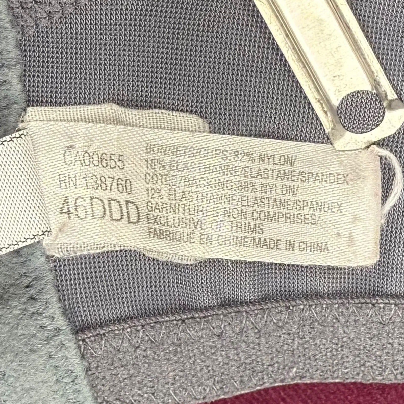 Voglio Daniela bra in gray with ivory lace trim along the neckline. Non-wired design with molded cups, adjustable straps, and back hook closure. There is light wear and pilling