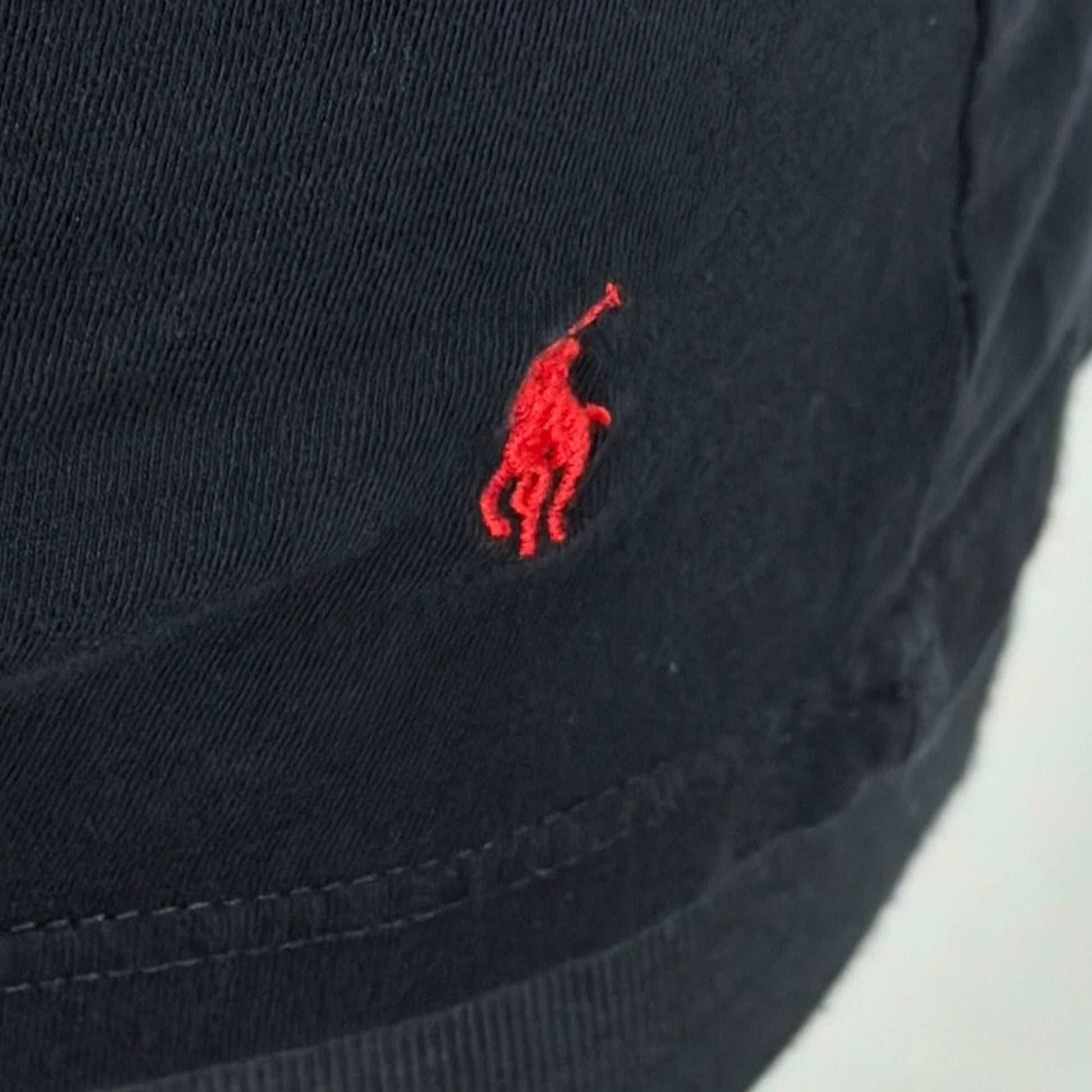 • Small red pony embroidery at hem