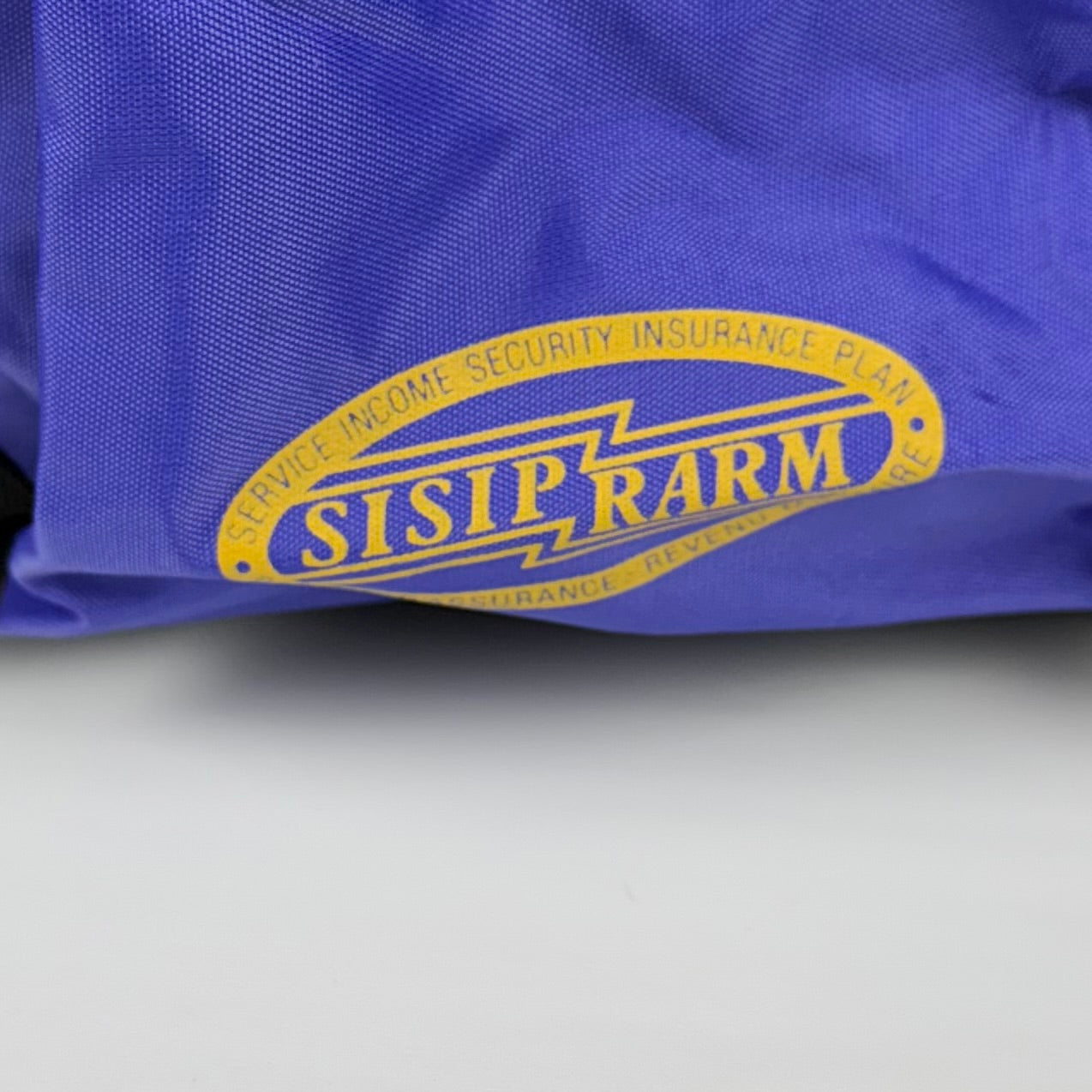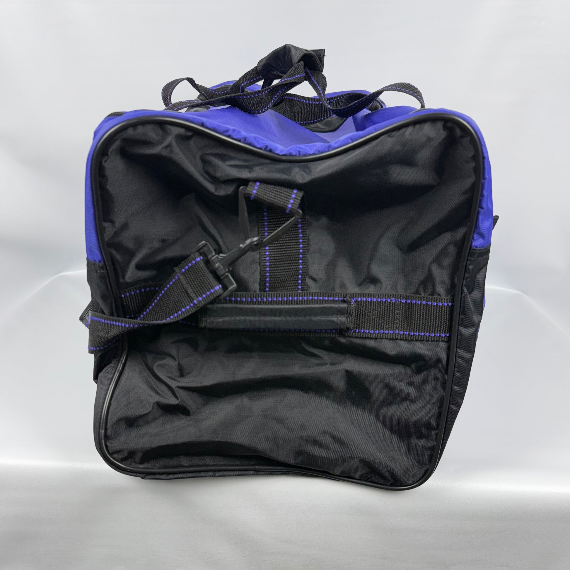Globetrotter nylon duffle in purple/black with SISIP/RARM crest. Roomy main compartment plus two front zip pockets and dual side zip compartments. Adjustable shoulder strap, padded carry handles, base feet, smooth zippers.