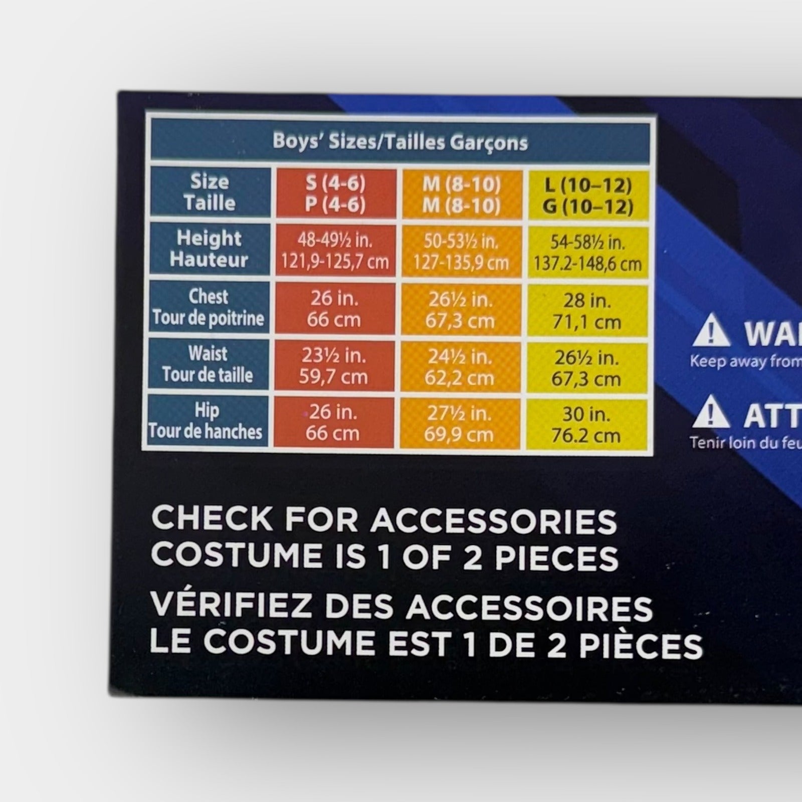 Official DC Comics boys’ Flash costume by Rubie’s. Set includes a red muscle-style jumpsuit with lightning bolt emblem and a molded red and yellow plastic mask with foam backing and elastic strap