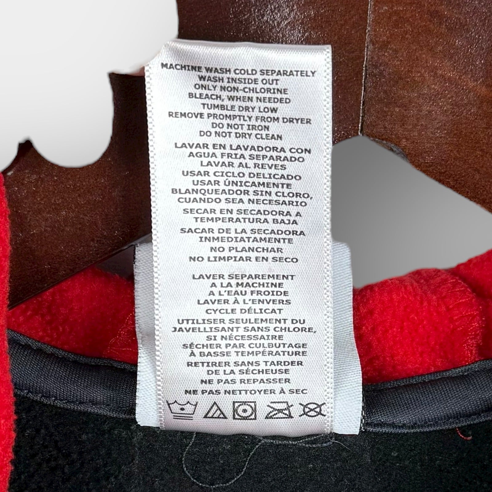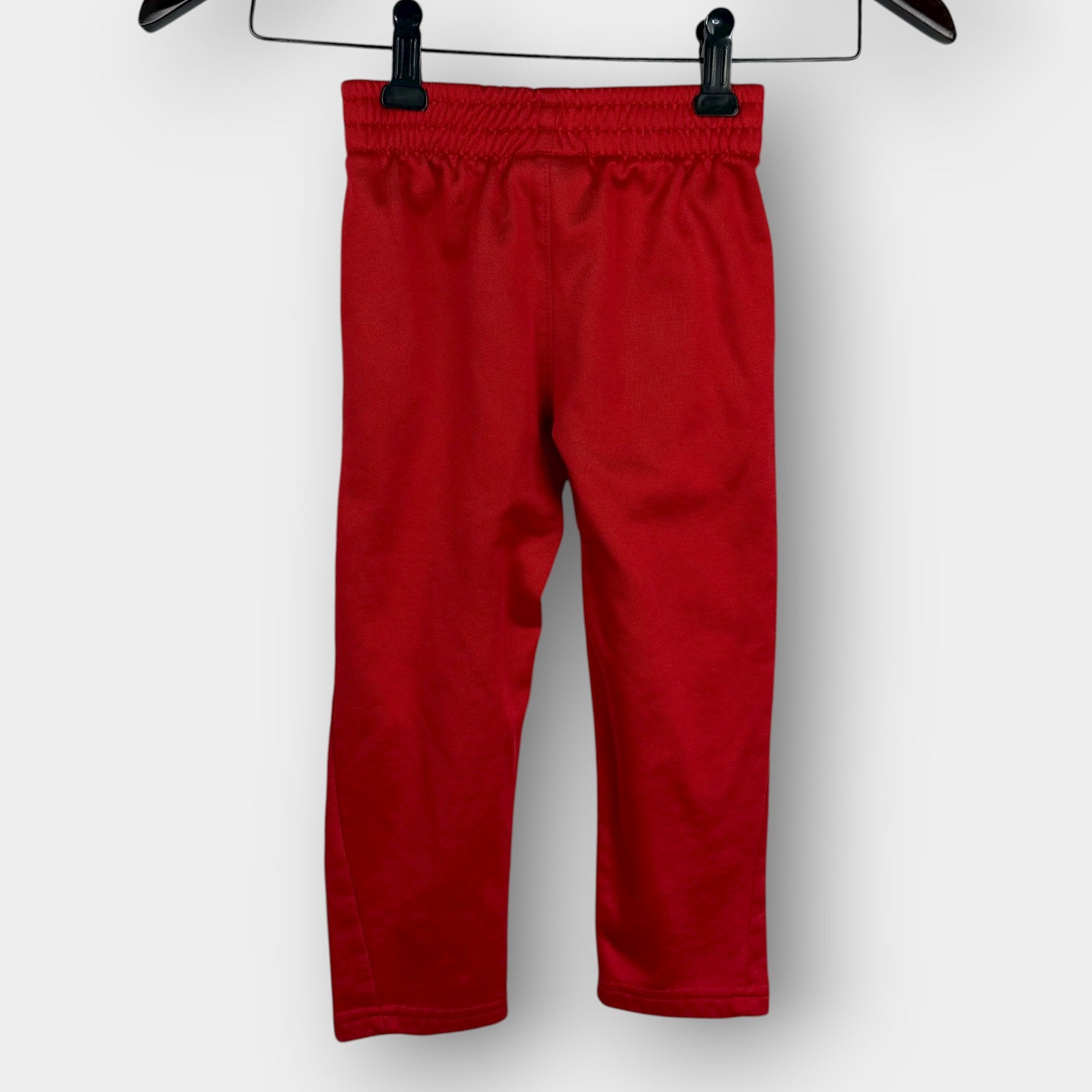Ottawa Senators kids two-piece set in red. Includes a zip-up hoodie with front pockets, black shoulder accents, team name across the back, and Senators logo on the chest. Matching jogger pants with elastic waist and team logo detail. Small mark noted. Colour appears different in photos and is not accurately represented