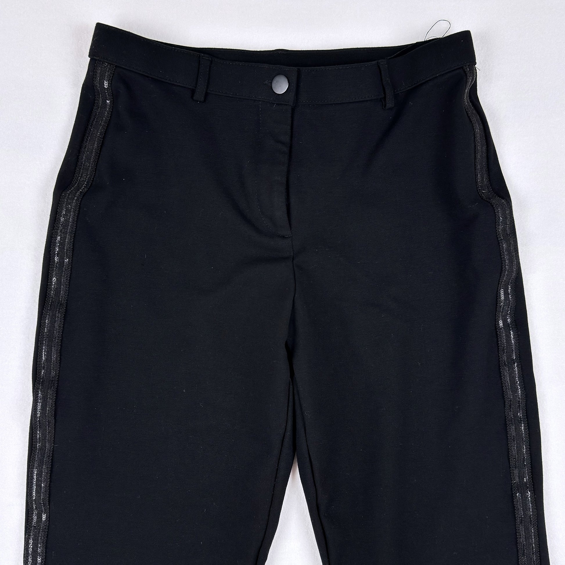 • Straight leg, ankle length with sequin tuxedo stripe down each side seam