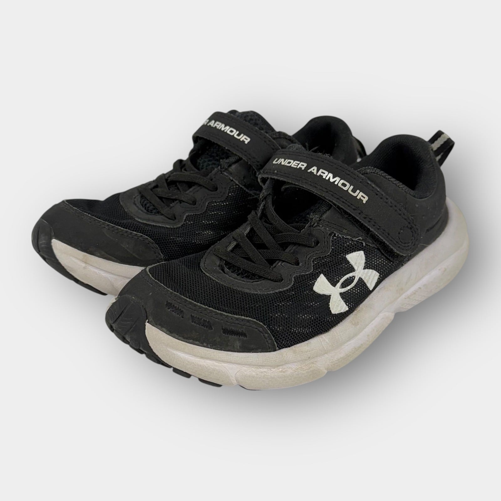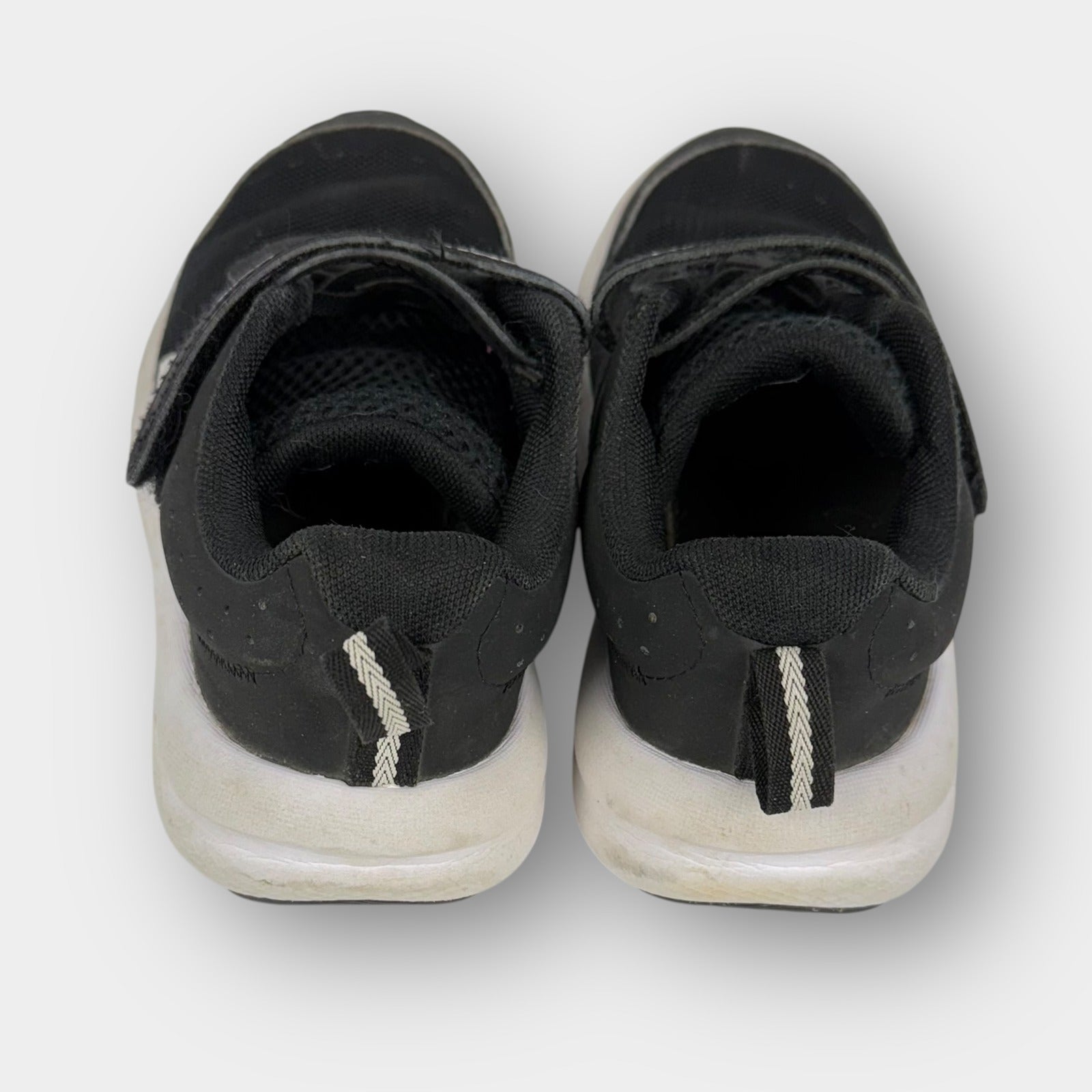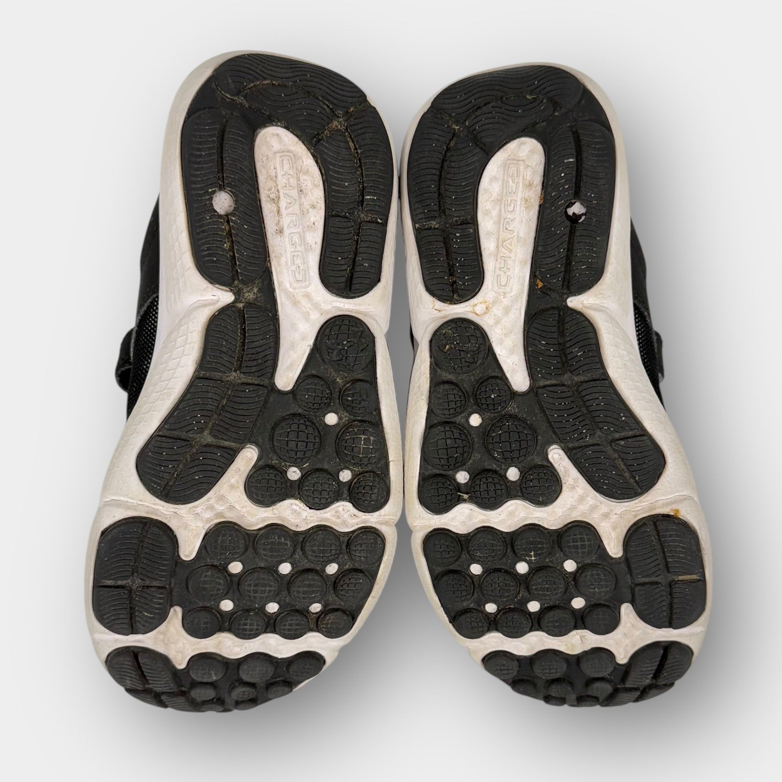 Mesh and synthetic overlays with brand logo on the side. Hook-and-loop strap for easy on/off plus elastic lace detail. Cushioned midsole and flexible outsole