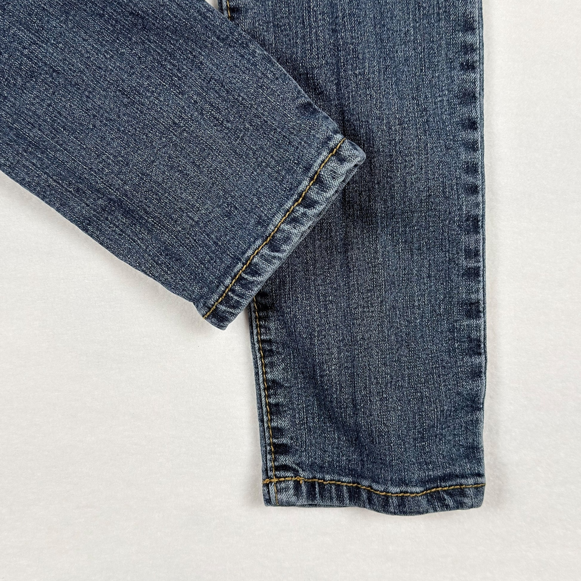 • Medium blue wash with whiskering and fading at thighs and seat