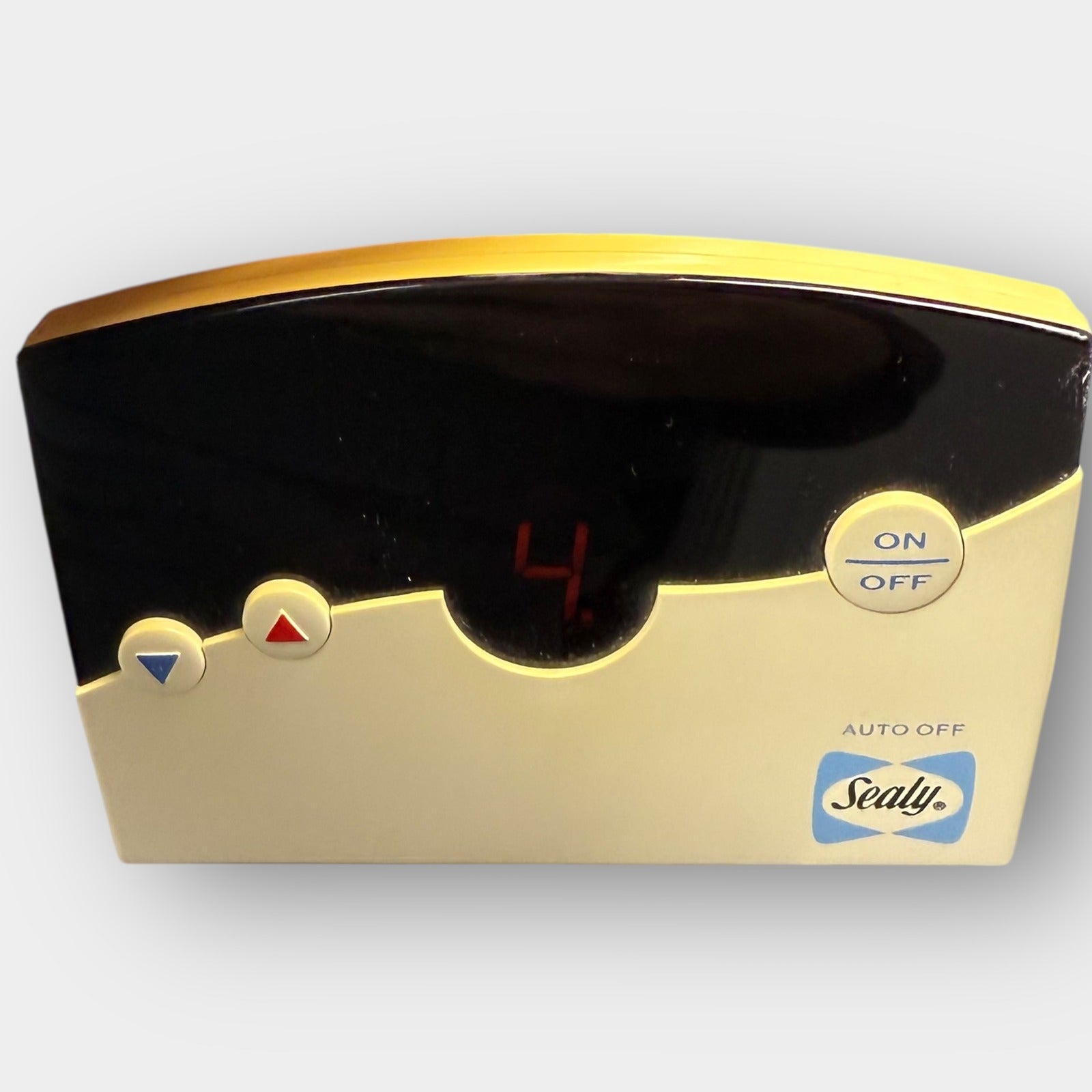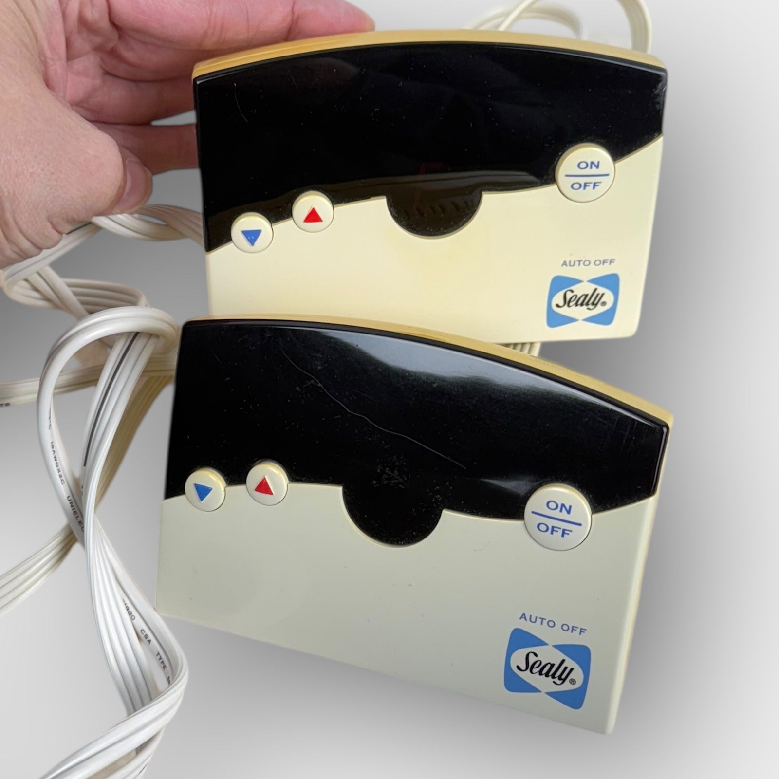 Sealy Posturepedic electric warming blanket, queen 84" x 90", ivory/cream, with two digital controllers (auto-off) and concealed plug port; soft fleece-like surface with satin binding; both left and right zones tested and heat properly; light lint and minor edge wear from storage as shown. The information sheet has become detached