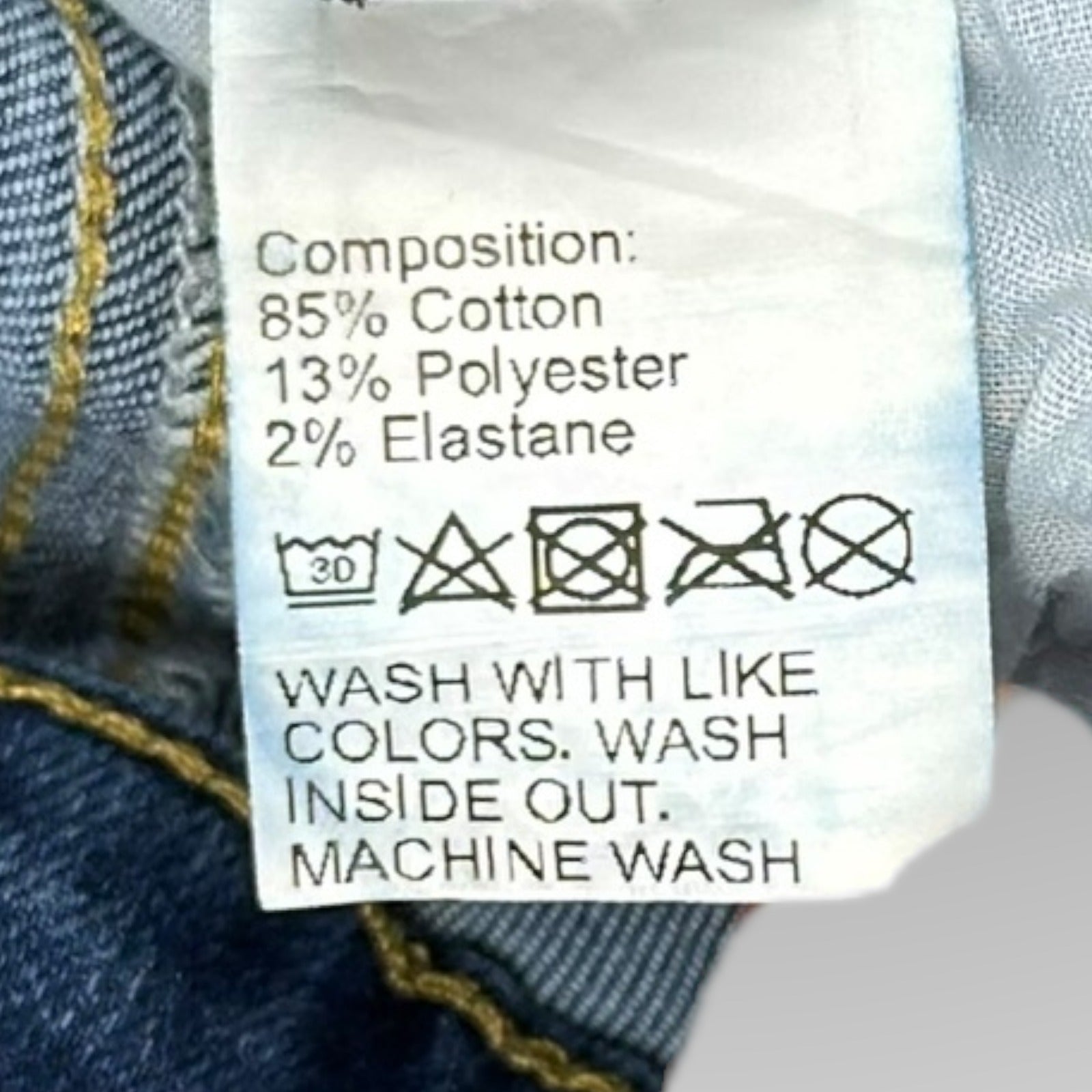 Medium-dark wash bootcut jeans with classic 5-pocket layout, zip fly with button closure, contrast topstitching, and light whiskering/fade at the thighs