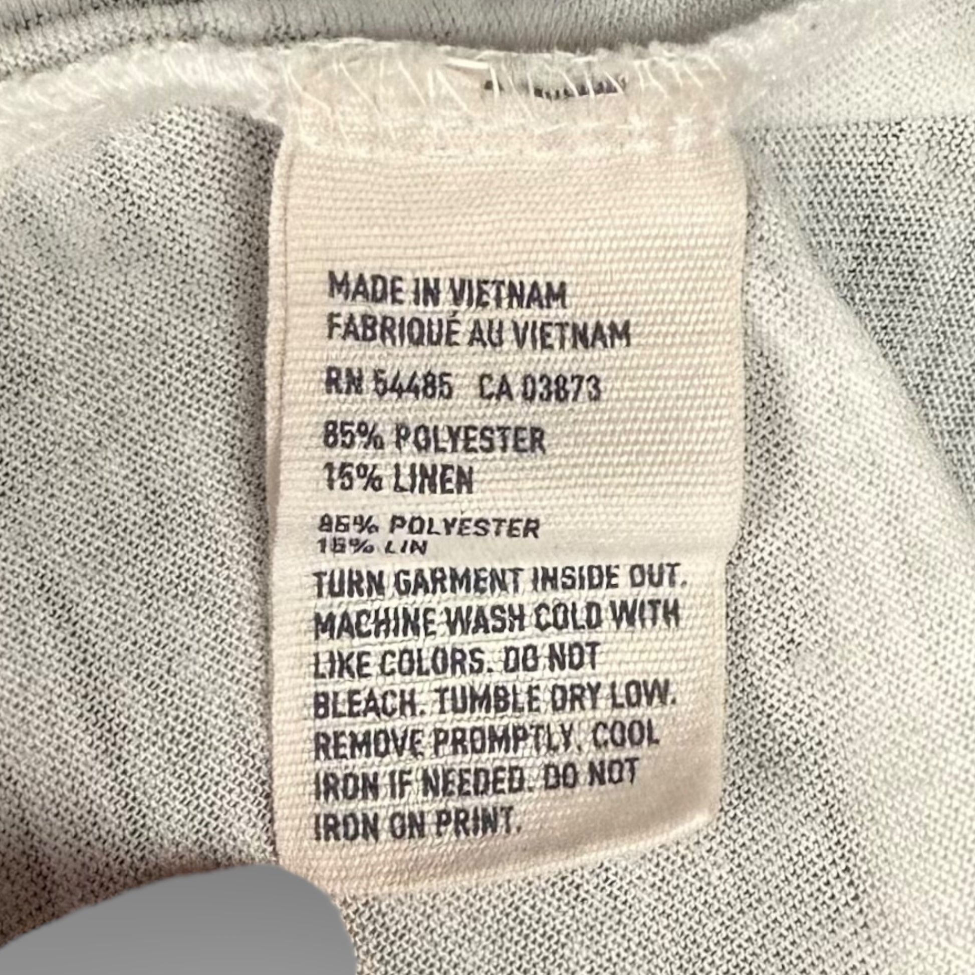 American Eagle “Beach Please” racerback tank in white. Easy, lightweight feel with a scoop neck and curved hem.